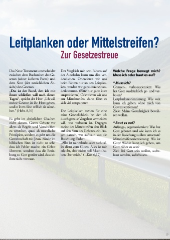 ben.“ (Hebr. 8,10) Die Leitplanken stehen für eine Ziele: Meine Gerechtigkeit bewah-